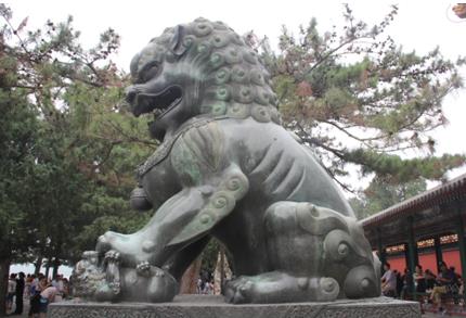 狮子原本不生活在我国,据说是当年张骞出使西域时,西域人将其进贡给东汉皇帝,和我们的大熊猫出国一样。在当时的国都洛阳,引起了不小的轰动。这狮子远道而来,不仅受到礼遇,国人对它厚爱有加,尊称为“瑞兽”,更是走入中国人的民俗生活,并且抬到了与老虎相等的兽中之王地位。狮子在中国交了如此好运,也是得益于汉代时,佛教传入中国。佛经云:佛祖降生时,“一手指天,一手指地”,作狮子吼曰:“天上地下,惟我独尊”。所以佛教信众,将狮子视为庄严吉祥的神灵之兽,而倍加崇拜。更有传说,专司人间聪明智慧的文殊菩萨,是坐着狮子来到五台山显灵说法,五台山也就成了文殊菩萨说法的道场。